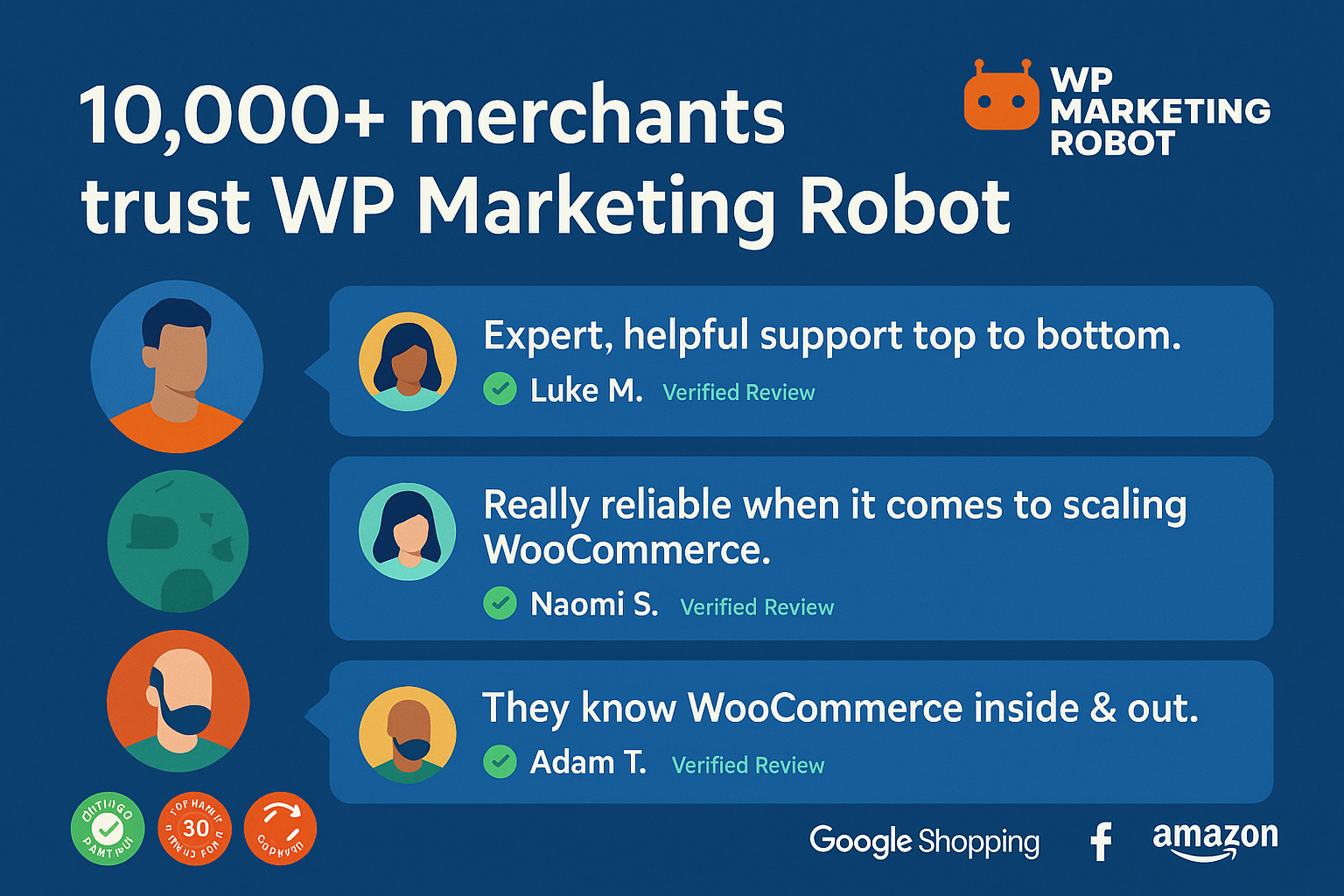 WP Marketing Robot was founded in 2016 by online marketing specialists who identified a clear market need: successful WooCommerce webshop owners required accurate and reliable product feeds. Our mission is to empower you by providing tools that ensure your products not only appear across various channels but truly stand out. With over 10,000 WooCommerce merchants utilizing our Product Feed Manager, we’ve built a reputation for precision, experience, and genuine partnership. We recommend solutions that align with WordPress system requirements itself, ensuring seamless compatibility and performance.