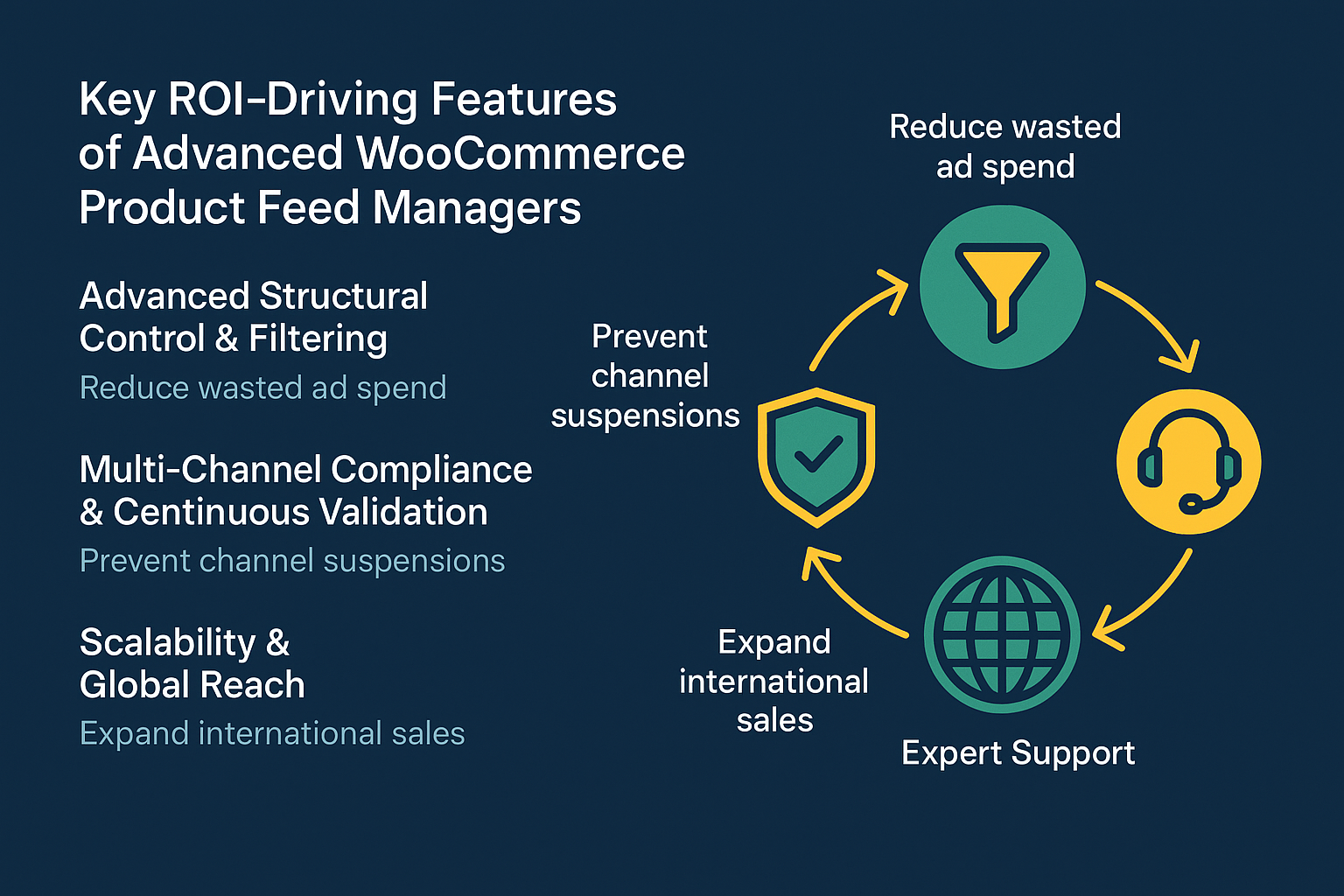 ROI Impact: Facing an account suspension can halt sales for days, weeks, or even indefinitely. Even a minor pricing mismatch can lead to a merchant center suspension, a problem many WooCommerce stores face. Automated validation and expert support minimize this risk. The cost of a single day of lost sales potentially far outweighs the annual cost of a premium feed manager.